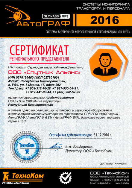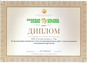 • Поставка, монтаж и обслуживание систем спутникового мониторинга работы сельхозтехники и автотранспорта (в частности, в 2014 г. был обеспечен непрерывный контроль работы сводного отряда зерноуборочных комбайнов, направленного из Башкортостана в Республику Крым. Работа получила высокую оценку в МСХ РБ);
